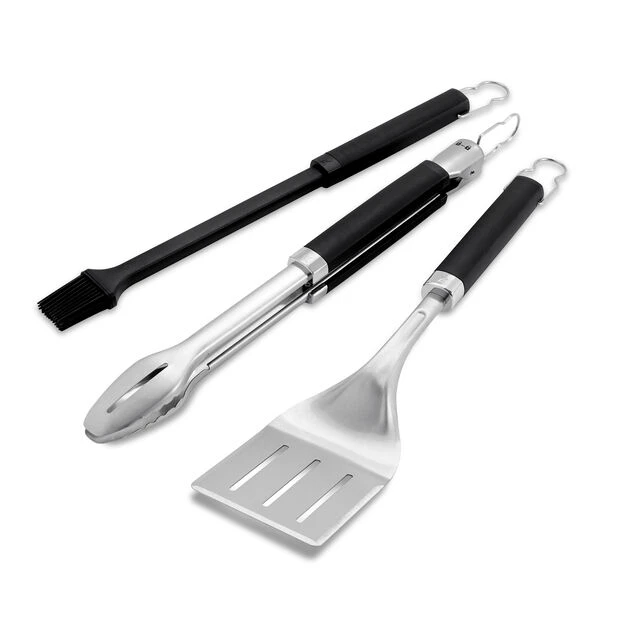Med Webers tredelte grillsett har du redskapene du trenger til grillkvelden. Settet bestÄr av spade, klype og bÞrste i rustfritt stÄl med gripevennlige hÄndtak. TÄler oppvaskmaskin.