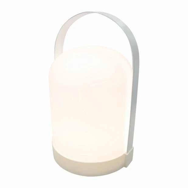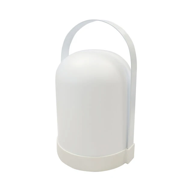 Vanntett utendørs bordlampe HVIT med metallhenger, plastfot. Krever 3 x AA-batterier (følger ikke med). Høyde: 22 cm. Plasser den på bordet eller gulvet innendørs og utendørs.