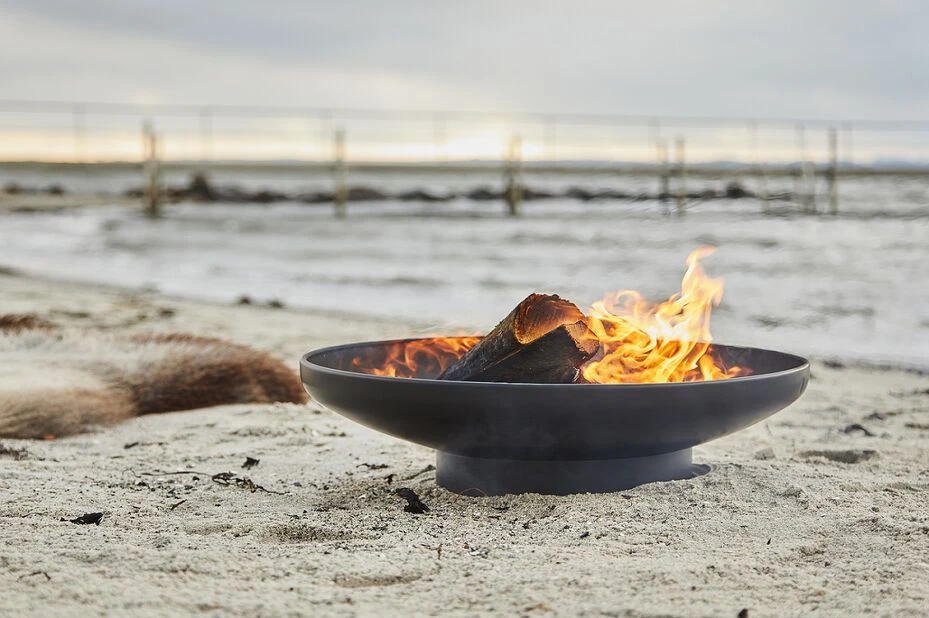 Rund bålpanne i tidløs design. Jern. Mål: 80 x 80 x 16 cm.