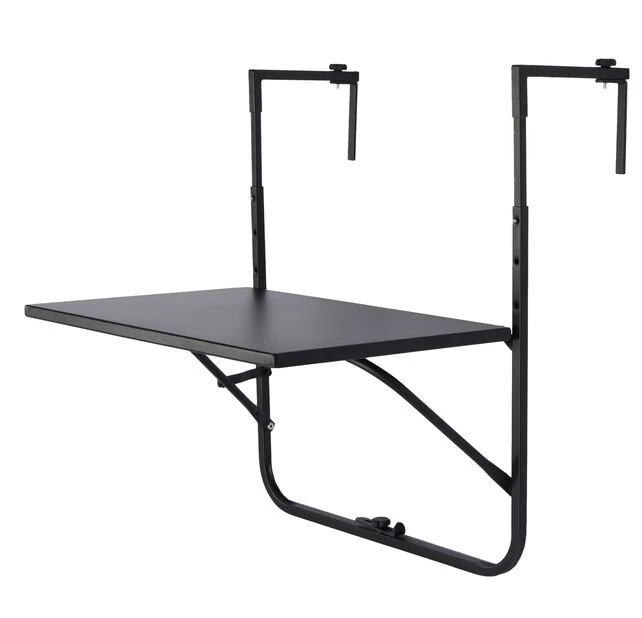 Praktisk, sammenleggbart bord til smÄ balkonger. Henges enkelt pÄ balkongrekkverket. Svart stÄl. Bredde: 60 cm.