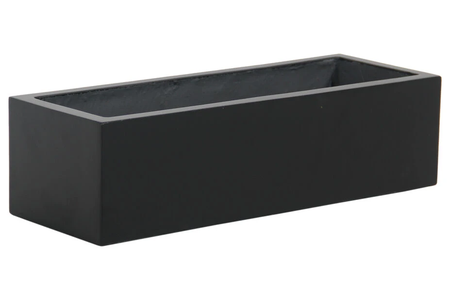 Moderne og stilig, rektangulĂŠr balkongkasse for bruk utendĂžrs. I frostssikker lettsement med dreneringshull. Lengde: 50 cm, hĂžyde 18 cm.