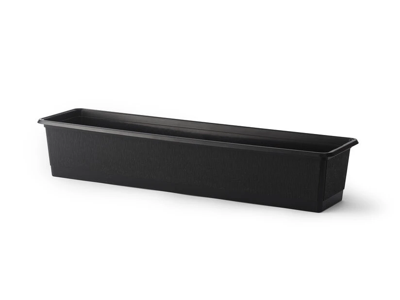 Structure er en stilren balkongkasse i hvit plast, som kan benyttes med beslag alene, eller i eksisterende oppheng av smijern eller annet. MÄtt 70 x 18 x 14 cm.