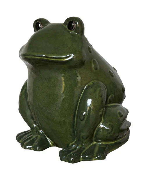Flott hagedekorasjon i form av en grønn frosk i keramikk. Dekorer hagen, dammen eller uteplassen med en klassisk dekorasjonsfrosk! Fås i to størrelser.