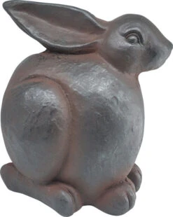 Tradisjonell hagedekorasjon i form av en mørkegrå kanin med matt finish. Dekorer hagen, terrassen eller uteplassen med en klassisk dekorasjonskanin!
