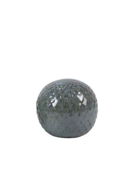 Pynt opp i hagen eller huset med denne håndlagde kulen i leire, glassert med blågrå glassur. Vakker som dekorasjon uten eller inne. Frostsikker. Ø14 cm.