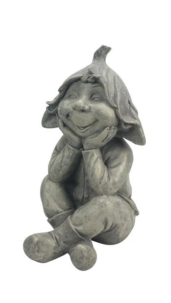 Hva er det som gjemmer seg der i alt det grønne? Med denne søte alven kan hagen frodige partier pyntes litt ekstra, eller du kan oppnå en fin match på trappen sammen med en stor potte fylt med blomstrende, grønne planter. Alven kan selvfølgelig også brukes som pynt innendørs.