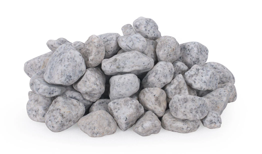 Dekorstein i grå granitt. Bruk dem gjerne rundt plantene dine, eller hvorfor ikke i dammen. Steinene er 15-25 mm store. 10 kg sekk.