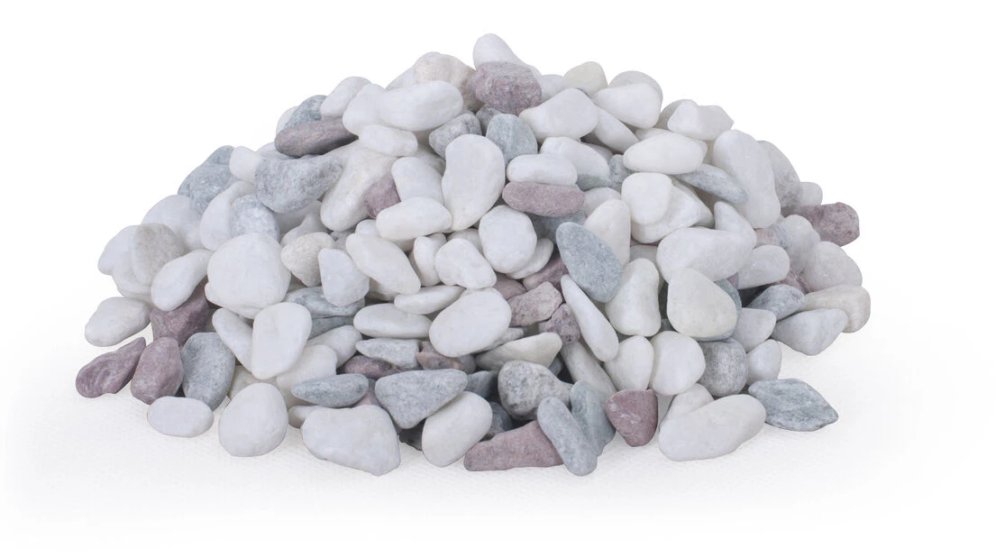 Knust marmor i fargemiks. Bruk dem gjerne rundt plantene dine, eller hvorfor ikke i dammen. Steinene er 9-15Â mm store. 10Â kg sekk.