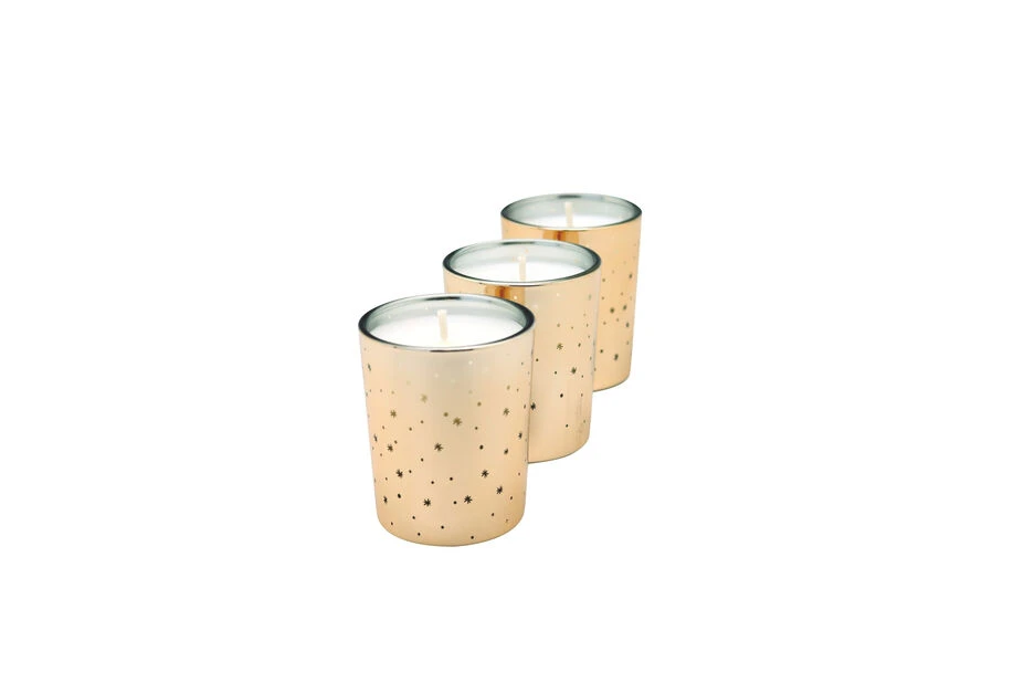 Gjør det koselig med levende lys! Disse vakre lysene i hvitt og gull gir en livlig duft. Lysene kommer i en herlig gaveeske som er perfekt å gi til kjente og kjære, både som julegave eller som en hyggelig oppmerksomhet til noen du er glad i.