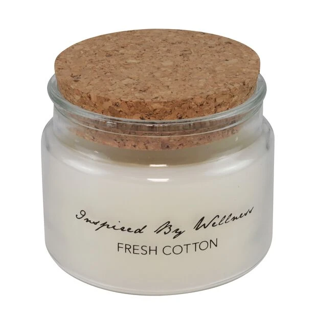 Lite, hvitt duftlys i transparent glass med lokk i kork. Nyt den friske duften av nyvasket bomull som har fütt tørke i solen! Brennetid: 25 t. Høyde: 7 cm, diameter: 9 cm.