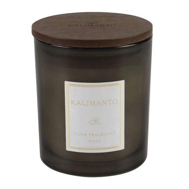 Fint duftlys i brunfarget glass med lokk i tre. Nyt den sensuelle, søte duften av musk med innslag av tre og lÌr. Perfekt stemningsskaper! Brennetid: 35 t. Høyde: 9 cm, diameter: 8 cm.