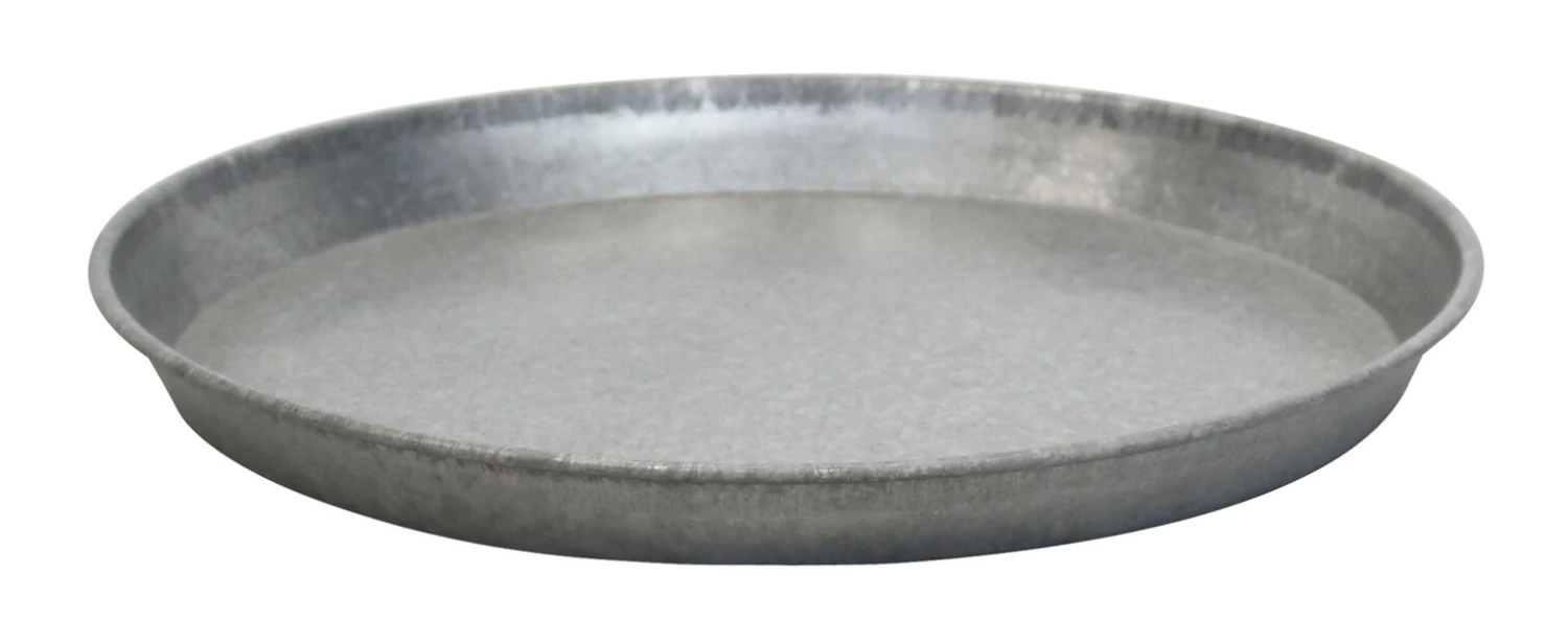 Rundt, vanntett fat i matt sink som beskytter terrassen mot fukt og søl fra utepotter. Passer også til innendørs bruk. Diameter 35 cm. Fås i flere størrelser.