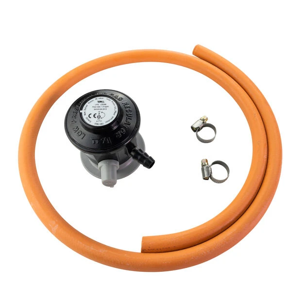 Universal regulatorsett for FCC BBQ gassgriller. 10 mm slang med regulator og klemmer for sikring og stramming. Egnet for norsk tilkobling. Lengde: 120 cm.