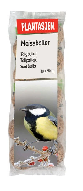 Nettfrie meiseboller: miljĂžvennlig og tryggere for fuglene. Meisebollene er godt likt av mange fugler og viktig kilde til fett og nĂŠringsstoffer. Inneholder bl.a.: knust hvete, talg og solsikkefrĂž. 10-pakning.