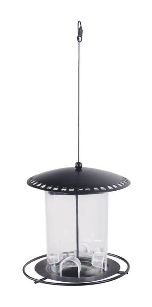 Fuglemater med plass til frø. Metallbøyle til oppheng følger med. Høyde: 18 cm