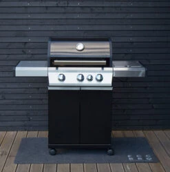 Gassgrill med stor kapasitet. Tre hovedbrennere og en sidebrenner i rustfritt stål med integrert tenning som gir en effekt på 13,5 kW. Mål: 128 x 53 x 114,5 cm. Grillflate: 62,5 x 43,5 cm.