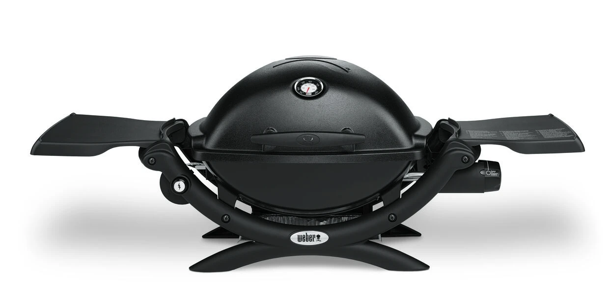 Weber Q 1200 er en portabel gassgrill med stilfullt design som er perfekt på tur. Utstyrt med rustfri brenner for grilling med direkte varme, bunn og lokk i aluminium som gjør at den både blir varm og kjøles ned raskt, og todelt porselensemaljert støpejernsrist som kommer opp i høye temperaturer. Grillen har trinnløs varmeregulering slik at du enkelt kan justere grillens temperatur, som du har kontroll på ved hjelp av det integrerte termometeret i lokket. Brukes med engangsgassflasker. Slange til større gassflaske kan ettermonteres. Mål: 39,4 x 103,9 x 41,9 cm.