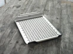 Praktisk grillform, som gjĂžr det mulig Ă„ grille fisk, kylling, og tilbehĂžr som enten fester seg eller forsvinner ned i grillristen. Kan vaskes i oppvaskmaskin.