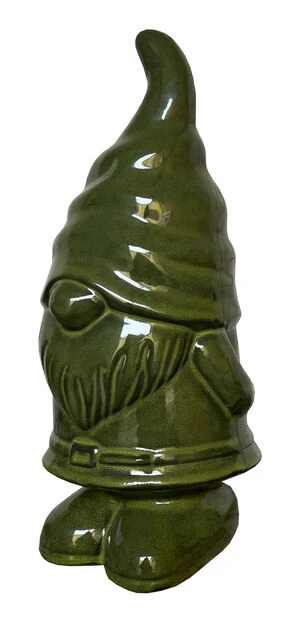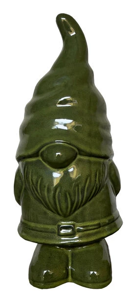 Klassisk, grønn hagenisse i keramikk med minimalistisk design som passer til alle hagestiler. Tradisjonell hagedekorasjon som aldri går av moten. Fås i to ulike størrelser.