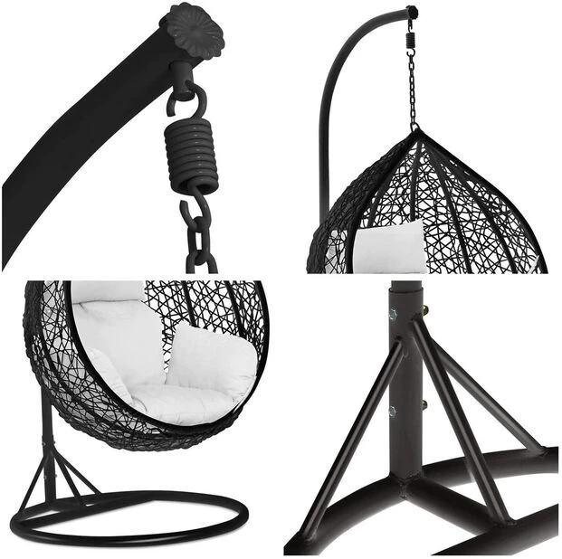 Granada er en komfortabel hengestol som det er godt å krype opp i med en god bok eller en kopp kaffe. Den flotte knoppformede designen gir en lun og innbydende følelse. Hengestolen er laget av pulverlakkert stål og UV-bestandig kunstrotting som krever minimalt vedlikehold og kan stå både ute og inne. Stativet har en rund, stabil fot som gjør at du enkelt kan plassere hengestolen der den passer best. Maksimal vektbelastning: 120 kg.