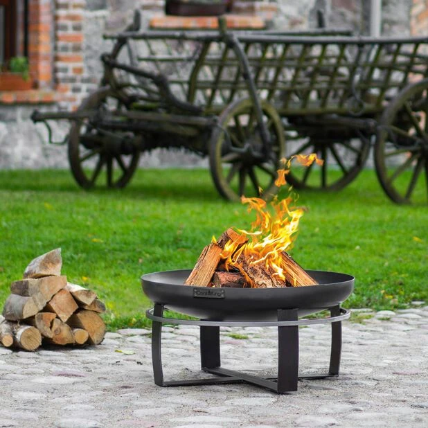 Ildfat Viking fra Cook King er et høykvalitets ildfat håndlaget i Europa, fremstilt av tykt stål som bærer preg av detaljerte finisher. Hele strukturen er veldig stabil og fast. Alle elementene er sveiset sammen med hverandre; som et resultat har et utrolig stabilt produkt blitt skapt. Ildfatet er en ideell løsning for alle som setter pris på sikkerhet mens de fyrer opp. Det bærbare Ildfatet kan brukes på mange måter. Det kan være et praktisk sted for opptenning, en bærbar grill, en varmekilde eller som en stilig kilde til belysning i hagen. Formen på skålen hindrer at veden som brenner sprer seg, for eksempel ved sterk vind. Bøylen sveiset til Ildfatet gjør det mye enklere å bære produktet. Ildfatene våre er laget av råstål; følgelig kan fargenyansen deres avvike fra produktet presentert på fotografiene. Det er en naturlig egenskap ved stål og har ingen negativ innvirkning på funksjonaliteten eller stabiliteten til produktet