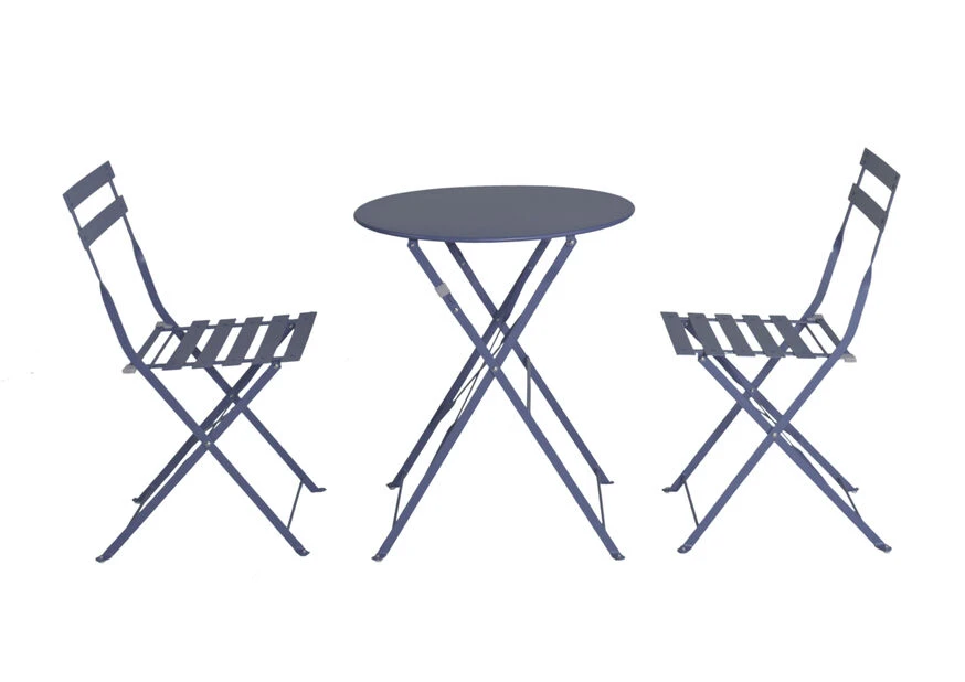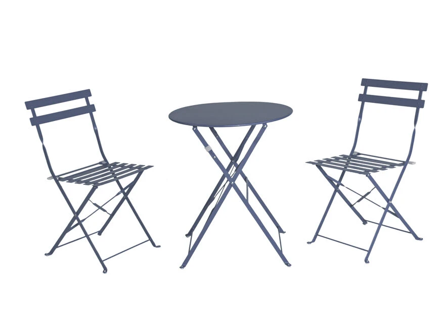 Det elegante kafésettet Osaka er en ekte klassiker. Stolene og bordet har en nett design i pulverlakkert stål, og er enkle å slå sammen og rydde unna når de ikke er i bruk. Et kafésett passer utmerket på balkongen, på den lille uteplassen, i inngangspartiet eller i en koselig krok i hagen.