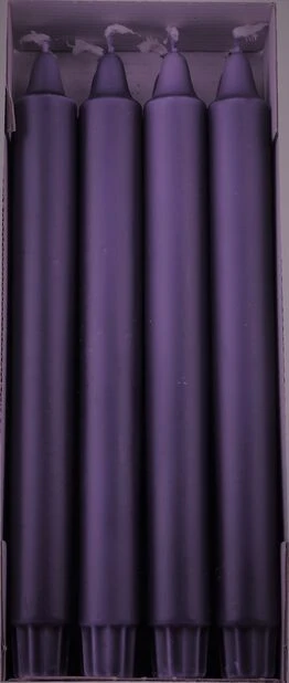 Kronelys 8-pk. i 100Â % stearin. Fin adventslilla farge. Lengde 24 cm. FĂĽs i flere farger.