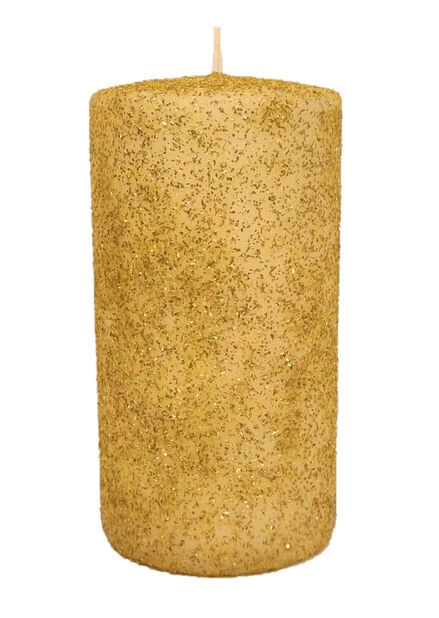 Dekorativt gullfarget kubbelys i parafin som er dyppet i glitter for ü gi ordentlig festfølelse. Tenn et lys som sprer stemning og varme i julen og pü nyüret. Brennetid ca. 85 timer.