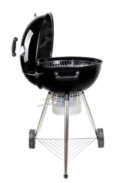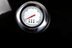 FCC BBQ Kullgrill 57 Superior i emaljert porselen med forkrommet grillrist, sinkbelagt kullrist, benrør i rustfritt stål, jernbøyle og brannskål i sort emalje. 2 stk. rustfritt håndtak med nylon. Utrustet med integrert FCC BBQ termometer og oppheng for lokket. Askesamler i jern.