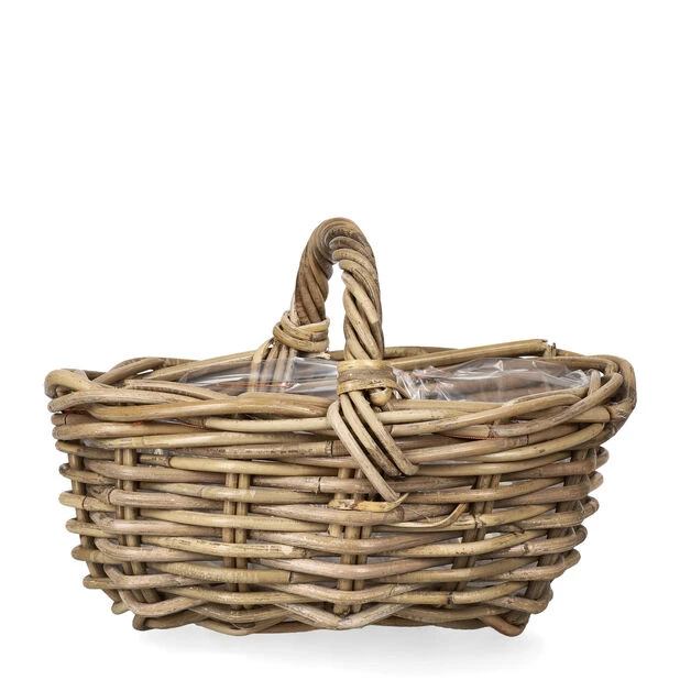 Klassisk kurv i tradisjonell design med rotting, hÄndtak og plastfÎr. Plant lÞk, urter og sesongblomster i en vakker kurv! FÄs i tre ulike stÞrrelser, kan brukes bÄde inne og ute.