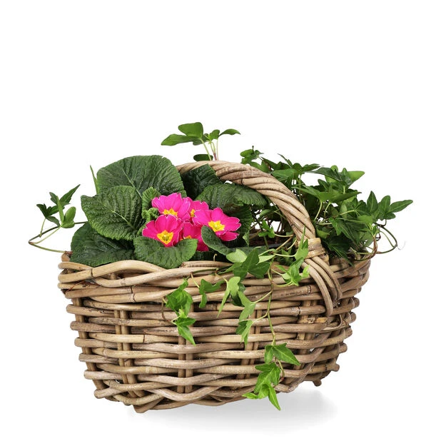 Evie er en tradisjonell potteserie som bestÄr av vakre rottingkurver med dekorativt hÄndtak som gir en naturlig fÞlelse til plantene dine. Plant vÄrens lÞk og sommerens blomster i en kurv for Ä skape en romantisk fÞlelse pÄ balkongen og uteplassen, eller som en vakker interiÞrdetalj i hjemmet. Plasser kurven ved inngangen for Ä Þnske deg selv og gjestene dine velkommen. Kurven har et beskyttende plastfÎr som beskytter underlaget, men bruk innerpotte i kurven for Ä sikre god drenering for plantene. Kurv Evie fÄs i tre ulike stÞrrelser.
