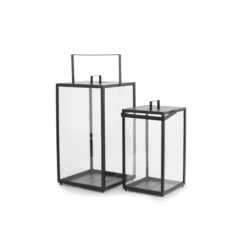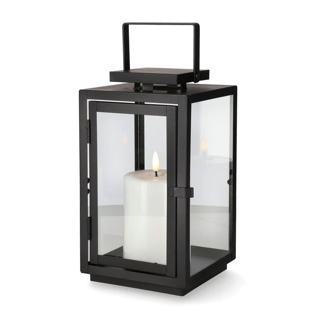 Minimalistisk lykt i matt, svart rektangulĂŚrt design – perfekt for en varm og koselig stemning i stuen, pĂĽ balkongen eller terrassen. Beregnet for kubbelys. Finnes i tre størrelser. MĂĽl: 14 x 13 cm, høyde: 23 cm.