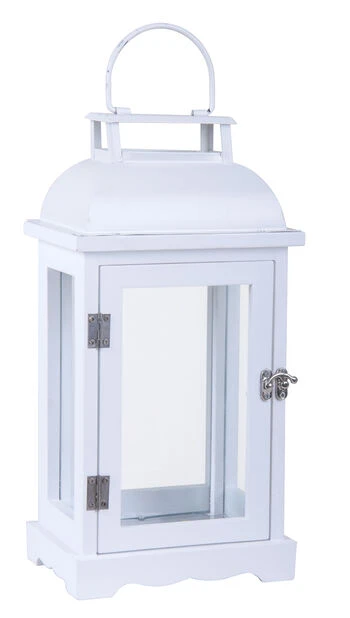 Skap en hyggelig stemning på en lun balkong, ved inngangspartiet eller inne i huset med en hvit lyslykt i tre med håndtak. Sett den på et bord, i vinduet eller på gulvet. Passer til kubbelys i forskjellige størrelser, vanlige små telys eller med en lysslynge og gir et stemningsfullt lys utover kveldene. Håndtaket gjør det enkelt å flytte på lykten og kan også brukes til å henge den opp med, enten i en krok eller på et veggfeste. Mål: 16,5x12x33,5 cm.