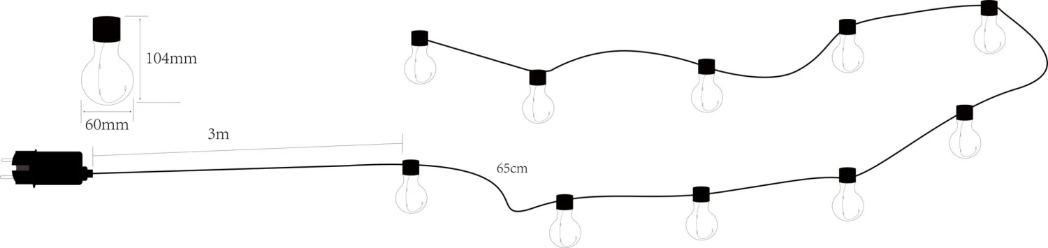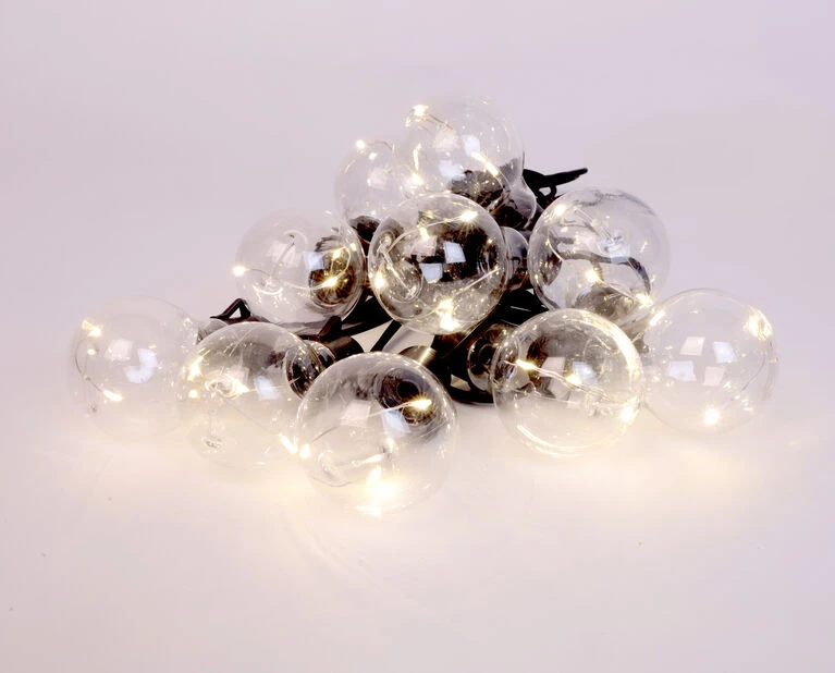 Øk kosefaktoren med en pen LED-lyslenke med store lyspærer. Koselig LED-lyslenke med sort ledning og kraftig transformator som gir stemning innendørs og utendørs. Mål: lyslenke 8,8 m, lyspære B6 x H10 cm.