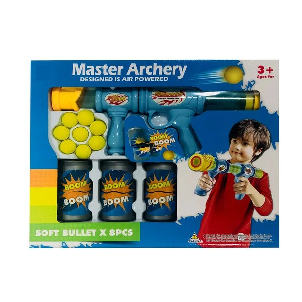 Sikt, skyt og forsÞk Ä treffe boksene. Denne lekepistolen skyter myke skumballer og perfekt for lek og moro i hagen, morsom aktivitet som fÄr med bÄde store og smÄ pÄ leken.