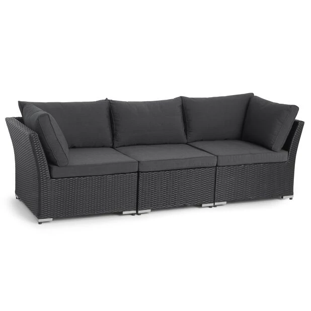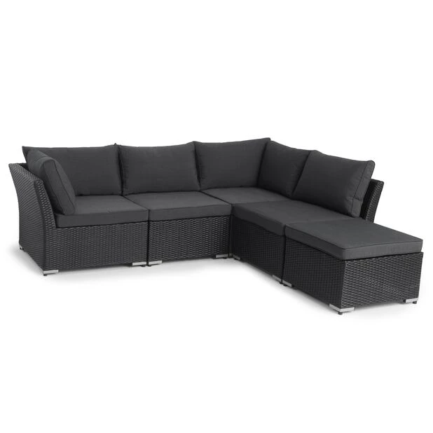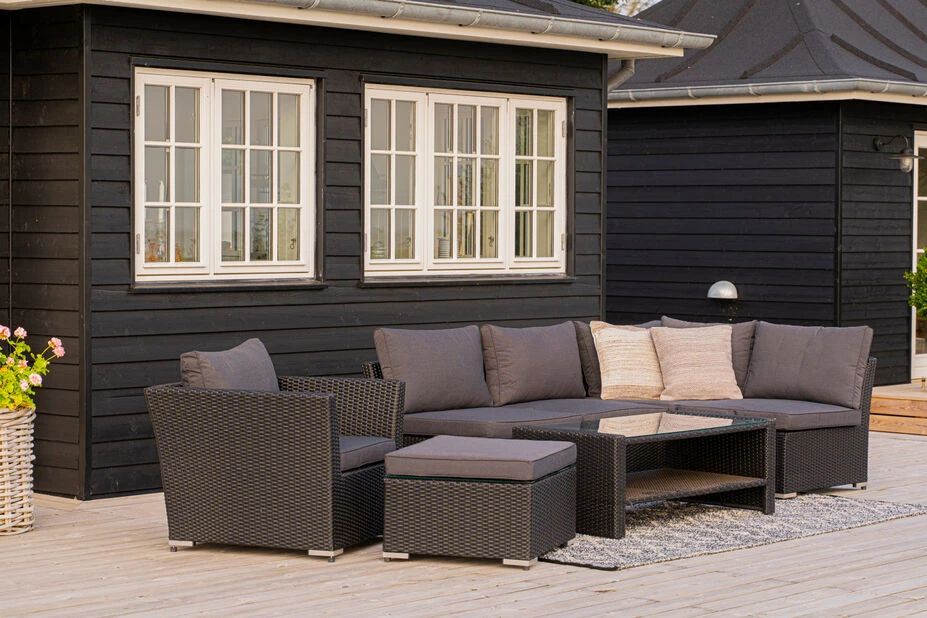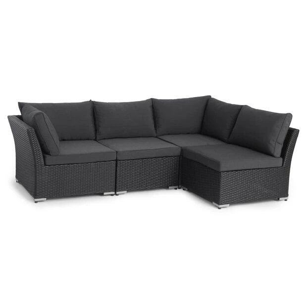Bygg ditt eget loungesett med serien Caracas! Miks og match delene i denne komfortable sofagruppen i slitesterk kunstrotting akkurat som du vil. Bruk modulene frittstående eller sett dem sammen til en herlig sittegruppe med plass til mange. Hjørnemodulen er laget av glatt kunstrotting som er UV- og fargebestandig, og har 10 cm tykke puter i værbestandig, vevd polyester (230 g/m2).