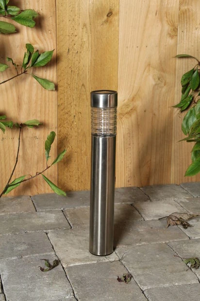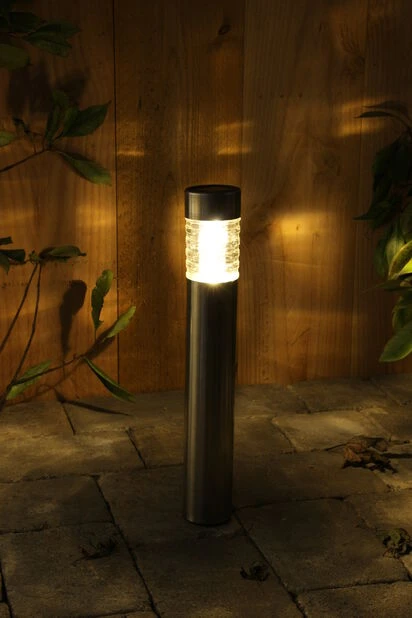 Den solcelledrevet lysarmaturen er utstyrt med AYR Chip som garanterer for at lampen lyser seks timer hver dag, året rundt! Tennes med On/Off- bryteren på undersiden av lampen. SMD LED-dioder. Lampens størrelse: Ø6,2×37/50,4. Laget av rustfritt stål.