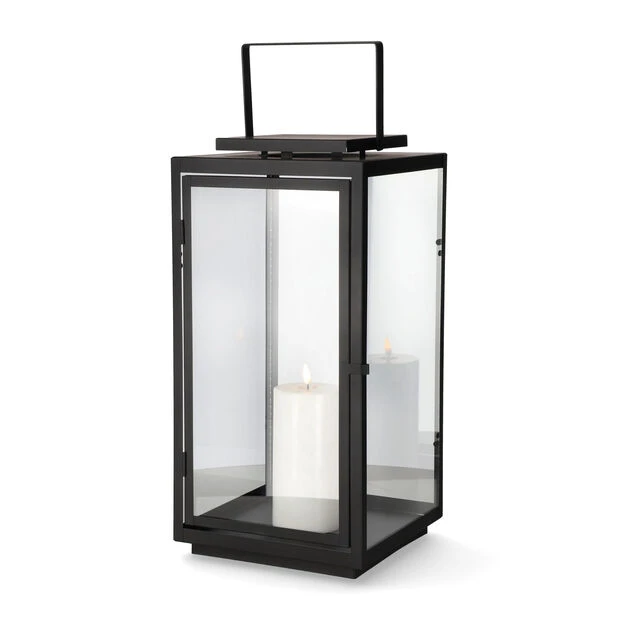 Minimalistisk lykt i matt, svart rektangulÌrt design som skaper hyggelig stemning i stuen og pü balkongen og terrassen. Perfekt for kubbelys, Finnes i tre størrelser. Mül: 22 x 22 cm, høyde: 43 cm.