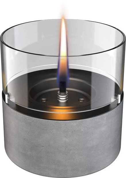 En dekorativ grå bordlykt med stilig kombinasjon av et røft materiale, myke former og dansende flammer uten os, sot, røyk og aske. Brenntid: ca. 4-5 timer. Mål: Ø13.0 x 15 cm.