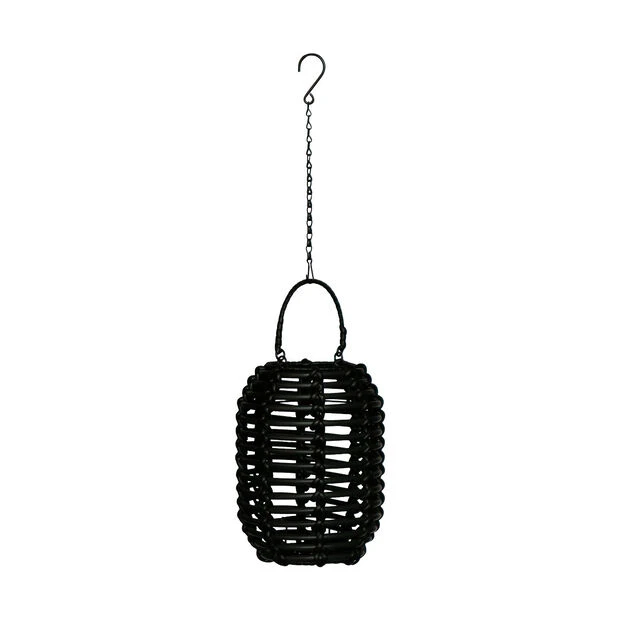 Skap en hyggelig spiseplass på balkongen eller i uterommet med en hengelykt! Denne fine lykten i sort kunstrotting gir et fint lys og kan brukes både inne og ute. Bruk gjerne et LED-kubbelys for behagelig og trygg, myk belysning.