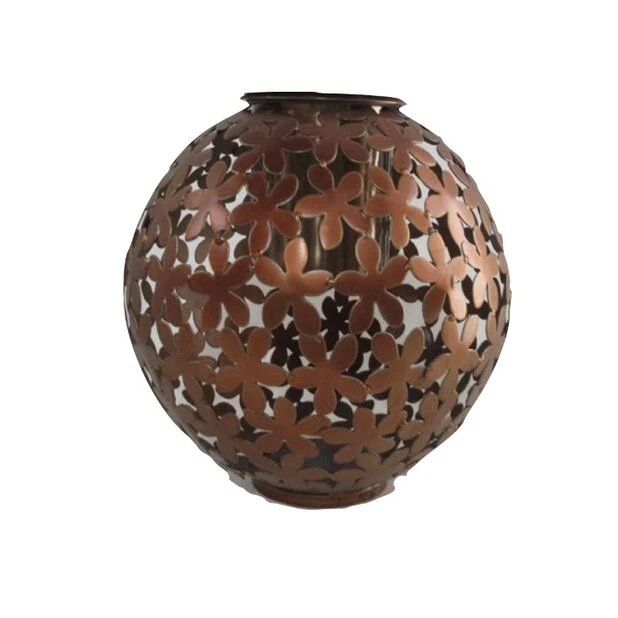 Rund, moderne lykt i kobberfarget metall med hortensia-mønster designet i samarbeid med Finn Schjøll. Miljøvennlig alternativ som ikke avgir røyk eller lukt. Brenntid: 4,5 timer. Mål: 25 x 25 x 25 cm.