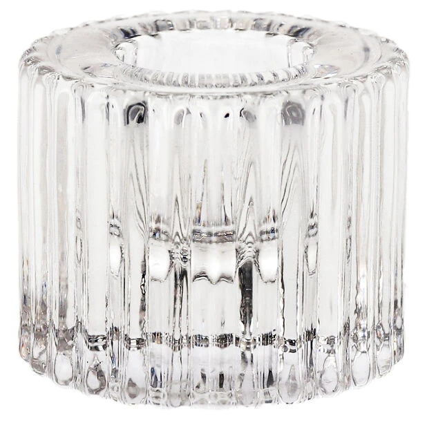 Pynt hjemmet med denne vakre lysestaken med riller i solid glass med en retroinspirert utforming. En tidløs lysestake helt enkelt! Høyde: 4 cm, bredde: 5 cm.