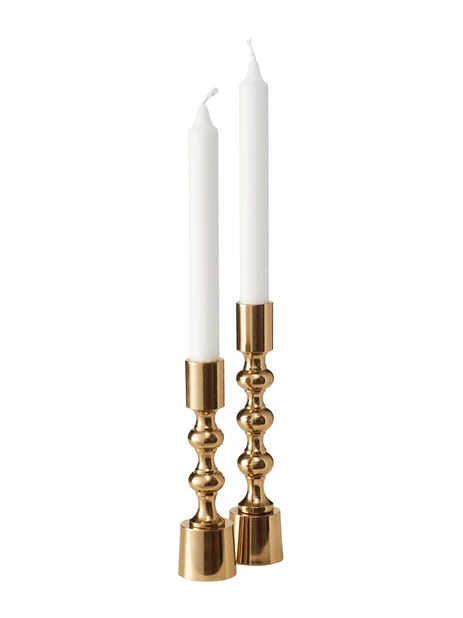 Moderne lysestake med vakker gullfarget glans. Den er laget av aluminium og har en blank, gullfarget overflate. Elegant og vakker! Füs i flere størrelser. Høyde: 16 cm, diameter: 4,5 cm.