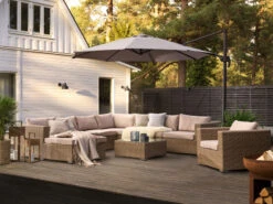 Skap en avslappende oase på uteplassen eller terrassen! Midtmodulen Asker er laget av UV-bestandig, halvrund kunstrotting, og har ramme i pulverlakkert aluminium med L-formede ben og justerbare føtter. Kraftige, UV-bestandige puter på 10 cm (230 g polyester) er inkludert. Kompletter med andre deler fra serien Asker for å få et komplett, komfortabelt og matchende loungesett som tåler å stå ute fra vår til høst. Pynt gjerne litt ekstra med fine puter og tepper. Med en møbelgruppe kan et bortglemt hjørne bli det mest populære stedet å oppholde seg på!