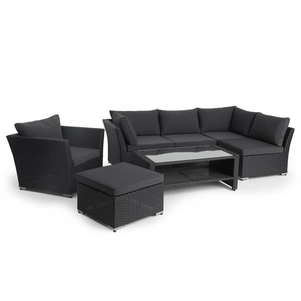 Bygg ditt eget loungesett med serien Caracas! Miks og match delene i denne komfortable sofagruppen i slitesterk kunstrotting akkurat som du vil. Bruk modulene frittstĂĽende eller sett dem sammen til en herlig sittegruppe med plass til mange. Midtmodulen er laget av glatt kunstrotting som er UV- og fargebestandig, og har 10 cm tykke puter i vĂŚrbestandig, vevd polyester (230 g/m2).