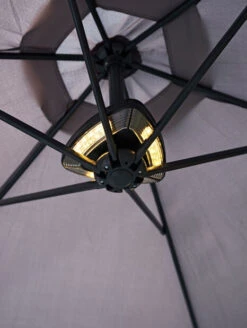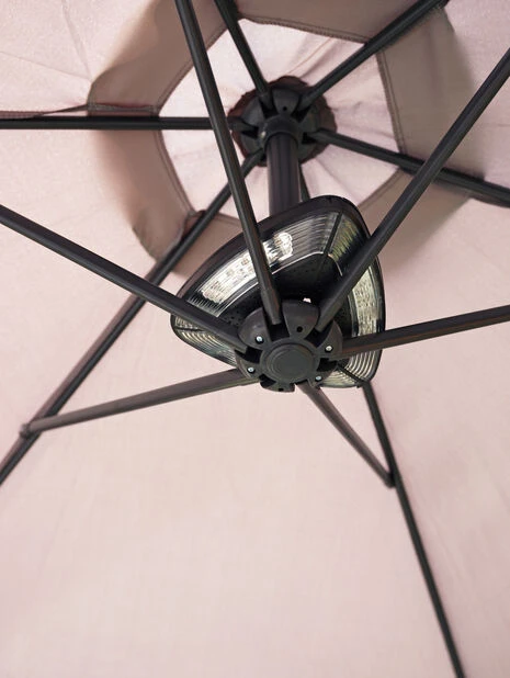 Triangelformet, batteridrevet parasollys med 15 LED-lys. Forlenger sommerkveldene ute med koselig lys. Passer til parasollstang med diameter 38-48 mm.