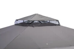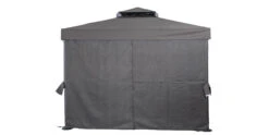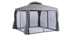 Komplett paviljong med ventilert tak, vegger og myggnetting som beskytter mot sol, vind, regn og insekter. Klassisk, grÄ paviljong med aluminiumsramme og UV-bestandig tak og vegger av polyester. Krever montering og forankring i bakken. MÄl: 3 x 3 m.