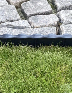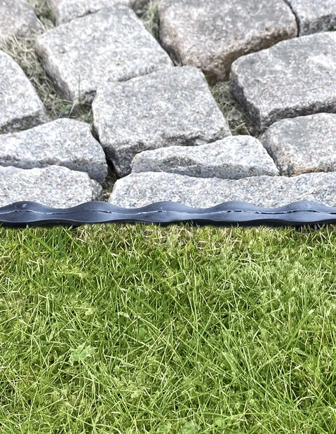 Denne plenkanten er laget av resirkulert PVC-plast og har en subtilt plissert profil. En plenkant kan brukes for å markere, tydeliggjøre eller skille av ulike områder i hagen din. Bruk gjerne plenkanten for å skape linjer eller for å separere plenen fra grusen, blomsterbedet eller dyrkefeltet. Plenkanten fungerer også utmerket som skille fliser og asfalt fra plenen eler blomsterbedet. Dens mange bruksområder gjør at plenkanen også kalles for hagekant, kantskiller og dyrkekant. Med plenkanten kan ugresset holdes på avstand samtidig som hagen rammes inn og oppleves ryddig og strukturert. Plenkanten er 12 cm høy, 1 cm bred og den taggete undersiden kan trykkes eller bankes forsiktig ned. Denne plenkanten selges i pakke med syv deler på 60 cm hver. De enkelte delene kan enkelt skjøtes sammen til ønsket lengde.