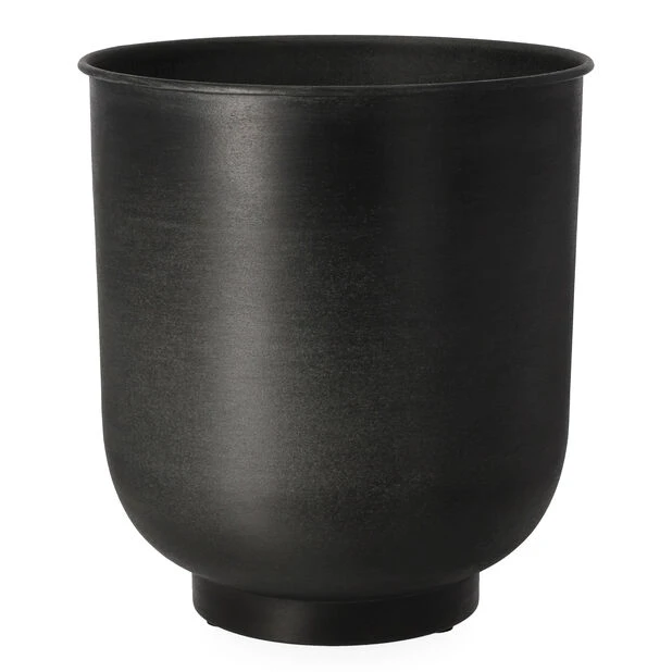 Vakker og moderne utendørs potte i glasert metall. Har hull til drenering og plastplugg slik at den også kan brukes innendørs. Frostsikker. Fås i flere farger. Diameter: 40 cm, høyde: 45 cm.