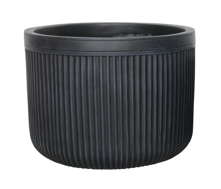 Fin, svart potte i leire til utendørs bruk, veier lite og har dreningshull. Mål: Ø 30 cm X H 23 cm og passer til innerpotter med Ø 21 cm. Fås også i mindre størrelse i samme serie.
